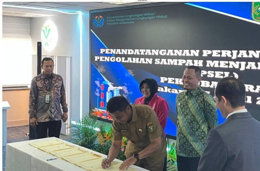 Penandatangan ini menurut Bupati Kampar adalah upaya konkret Pemerintah Kabupaten Kampar dalam mendukung dan menghadirkan solusi inovatif terhadap pengelolaan sampah. Ia menekankan bahwa teknologi ramah lingkungan yang digunakan dalam proyek PSEL tidak hanya mampu mengurangi volume sampah secara signifikan, tetapi juga menghasilkan energi listrik yang bermanfaat bagi masyarakat,” ucapnya usai meneken MoU bersama bersama Kementerian Lingkungan Hidup/Badan Pengendalian Lingkungan Hidup (KLH/BPLH) dalam sebuah acara yang berlangsung di ruang Command Center lantai 10, Menara Selatan Plaza Kuningan, Jakarta Selatan, Selasa (7/4/2026).