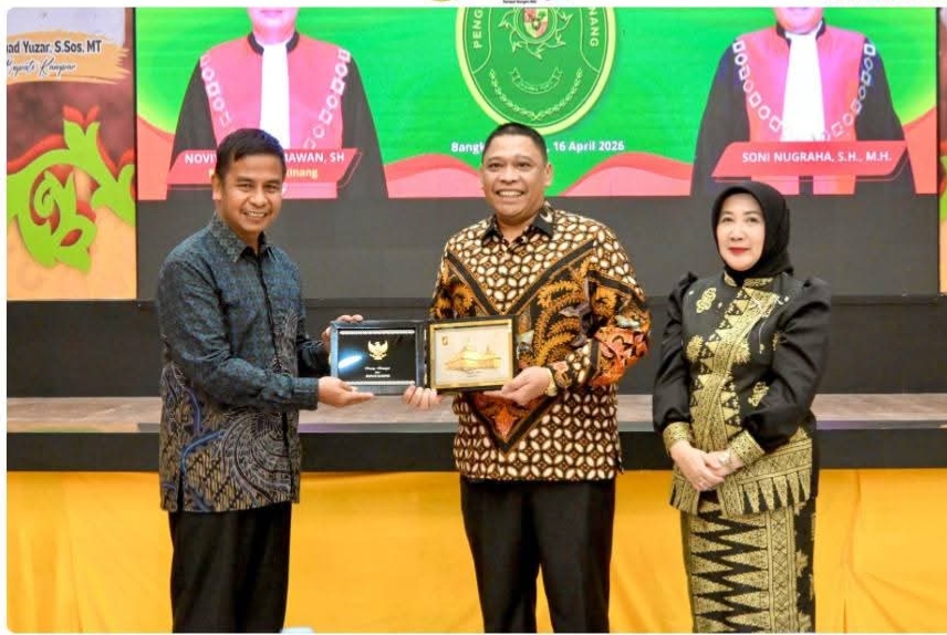 Kamparku.com – Bupati Kampar, Ahmad Yuzar, menghadiri acara pisah sambut Ketua Pengadilan Negeri Bangkinang Kelas IB yang berlangsung khidmat di Balai Bupati Kampar. Kegiatan ini menjadi momentum penting dalam rangka serah terima jabatan dari Ketua Pengadilan Negeri lama, Soni Nugraha, SH., MH, kepada pejabat baru, Noviyanto Hermawan, SH, Kamis (16/4/2026).